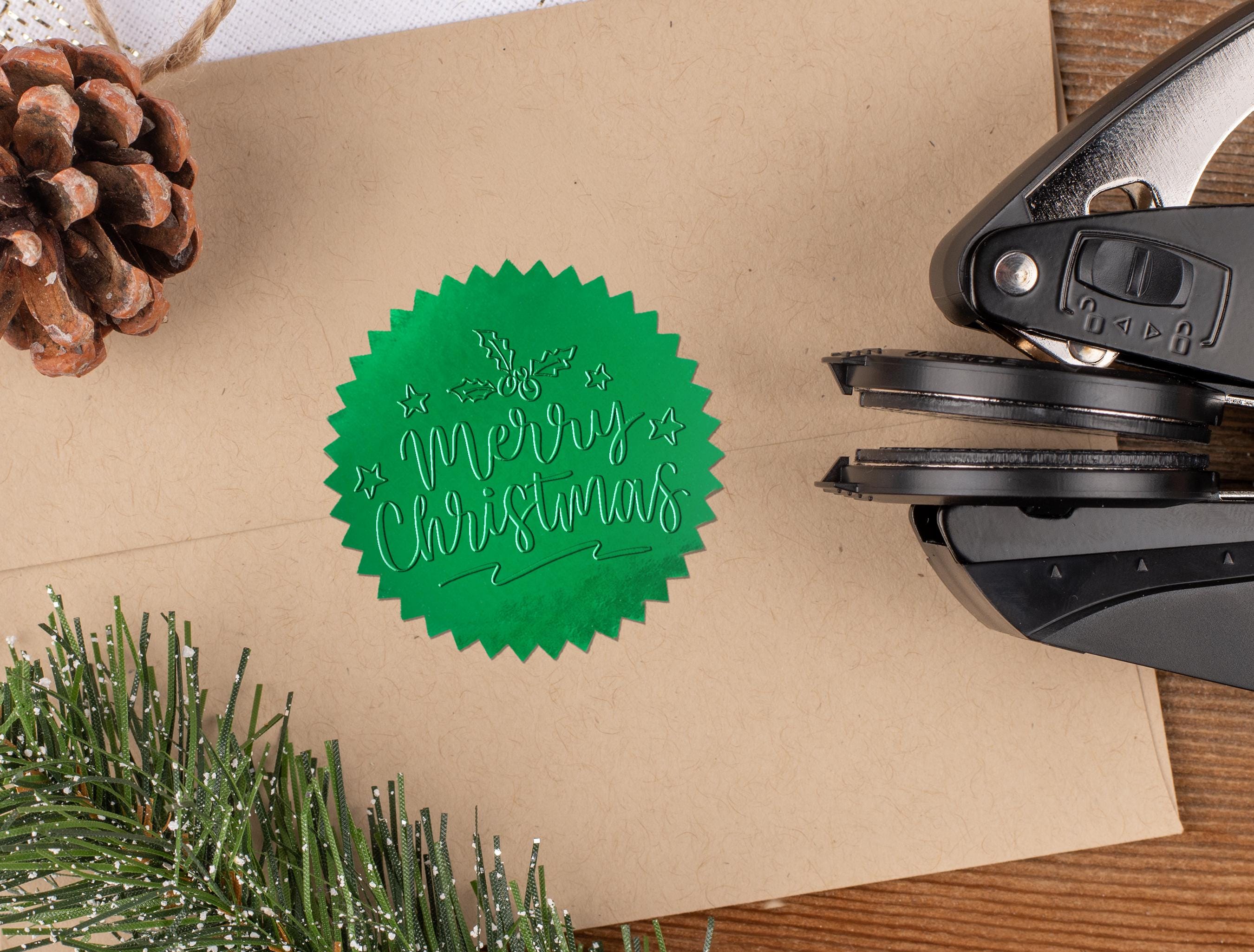 • Add our festive red or green foil seals to make your embossed design pop